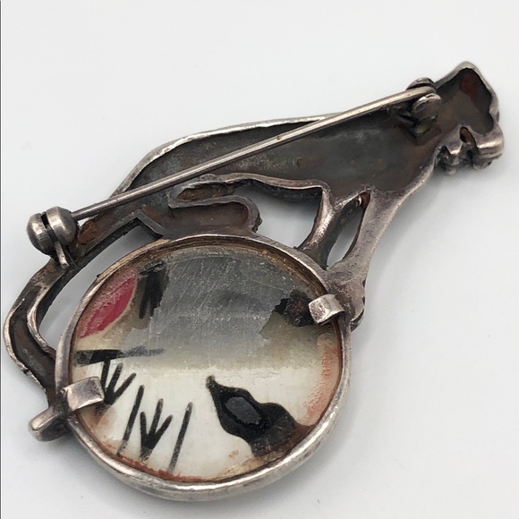 Antique Sterling Jaguar Panther MOP Brooch Pin