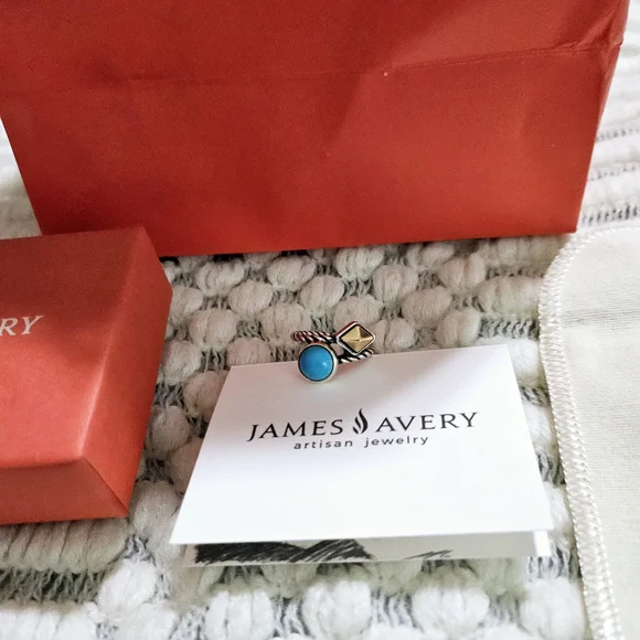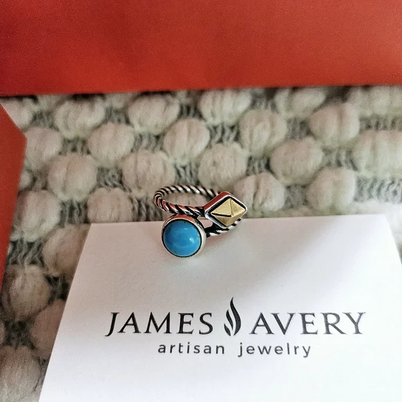 Elegant silver and gold-tone ring featuring a vibrant turquoise stone. Perfect for adding a pop of color to any outfit.Metal: Sterling Silver and Bronze Gemstone: Turquoise Size: 5.5 NWOT/ Comes with pouch, box, and bag.