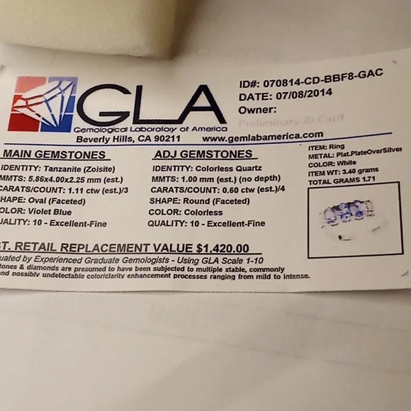 3 stone 1.11 ctw see card in photo for detail