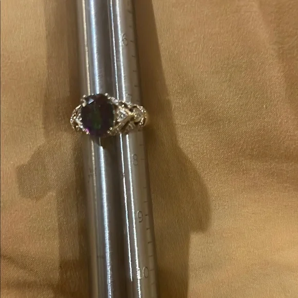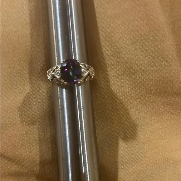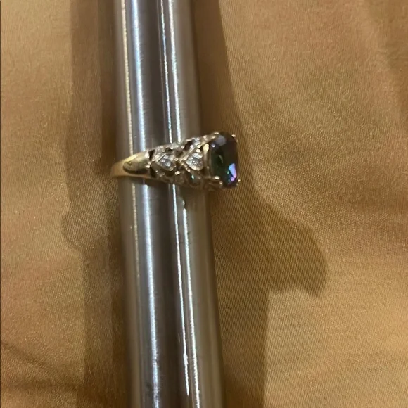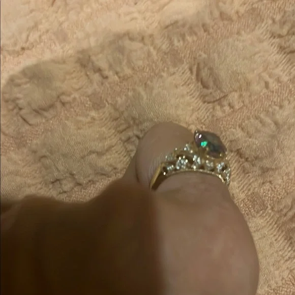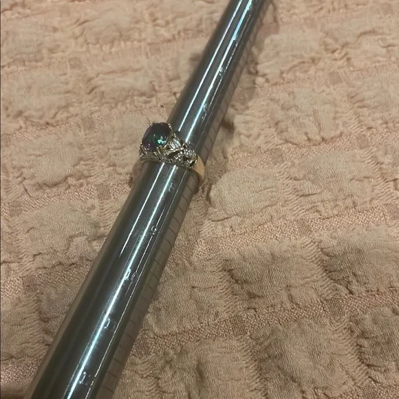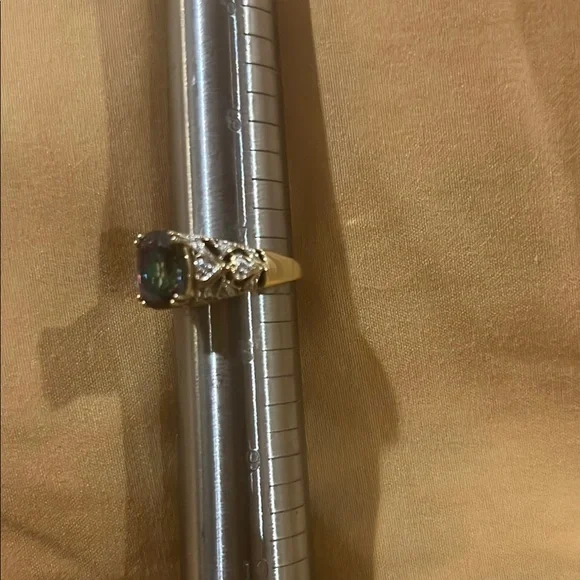 Gold Ring with Diamonds and a Beautiful Topaz that glistens purple, green & gold