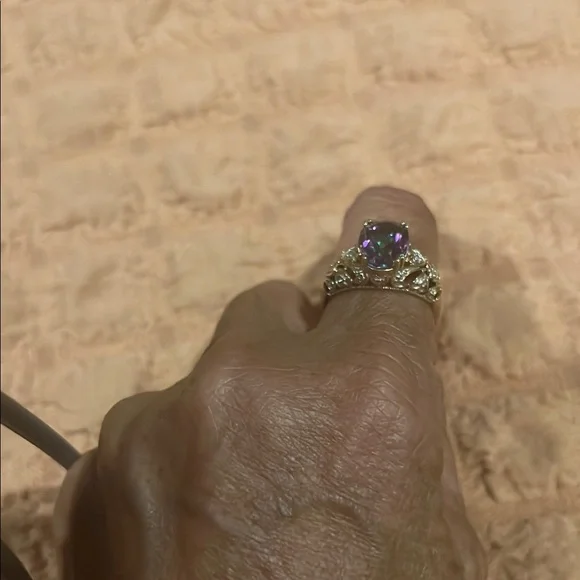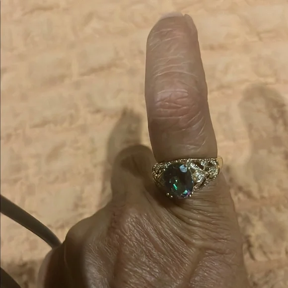 This Majestic ring with 3.15 ctw Precious stones. Genuine Diamonds and Topaz in Yellow Gold. Size 7 1/4 is perfect for adding a touch of elegance to any outfit. Its unique design makes it a standout piece in any jewelry collection. The Topaz makes it a great Mardi Gras Ring