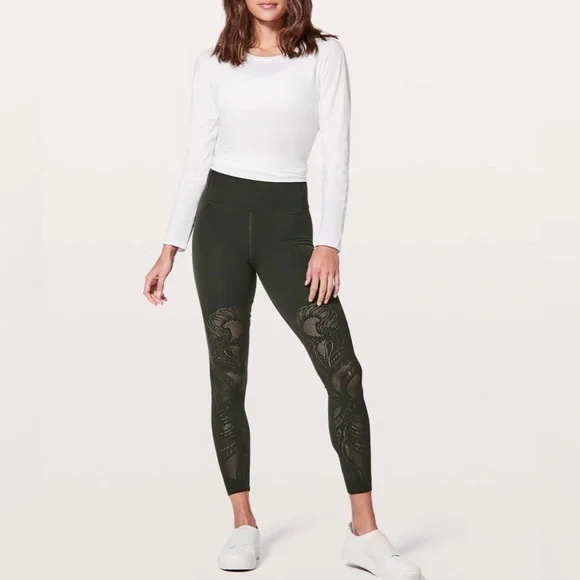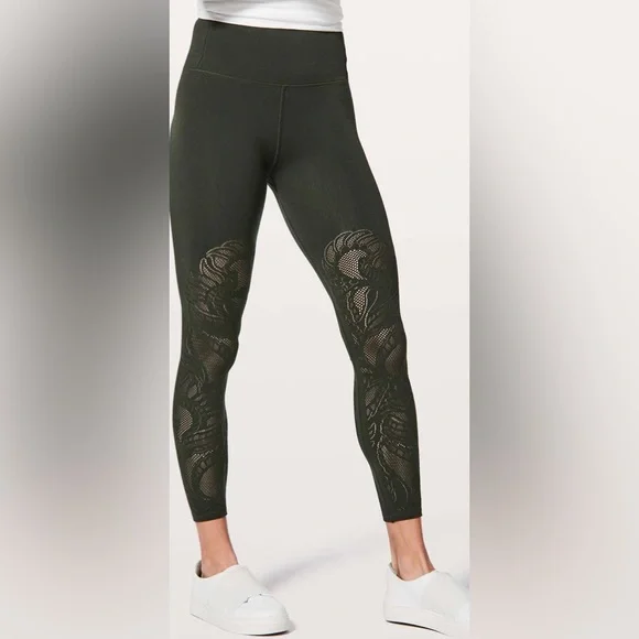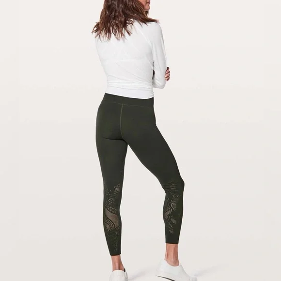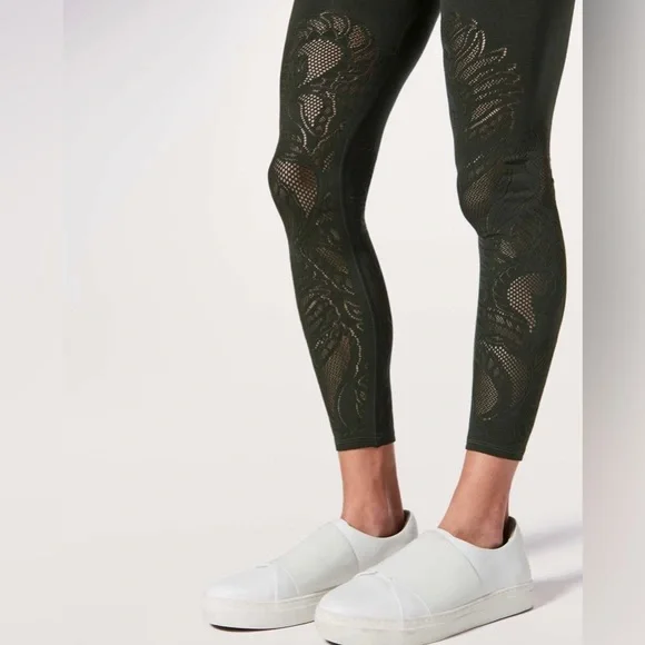 Lululemon Women’s Reveal Lattice Paisley Legging.Color: EvergreenSize: 2Approximate Measurements: Waist 11” (Stretch to 13”), Rise 8-1/2” & Inseam 27”Material: Lycra/MeshLike New Program - Excellent Condition!!!Play it cool. We designed these tights with built-in mesh detailing so you´ll get that much-needed dose of airflow-without feeling exposed —when your studio workout starts to heat up.Fabric is four-way stretch features• Designed for: Yoga• Lycra®: Added Lycra® fibre for shape retention• Reduced chafing: Seamless construction reduces chafing• Hidden pocket: Hidden waistband pocket holds a key• High-rise: Keeps you feeling covered and secure• Naked sensation: Engineered to feel like your go-to, lightweight, second-skin layer-you´ll forget you´re wearing this next-to-nothing sensation as you move