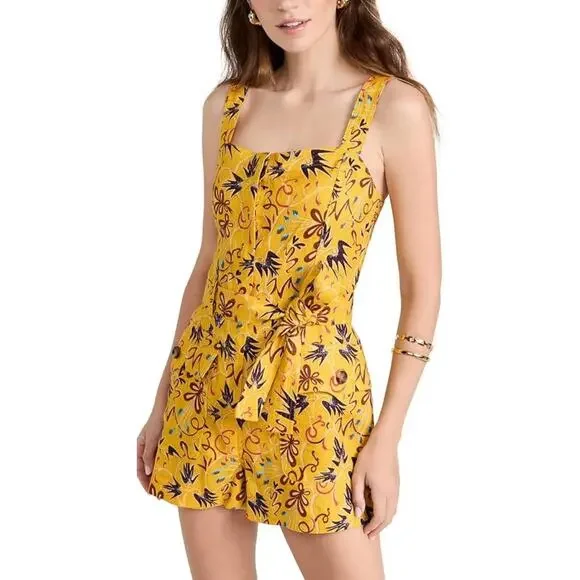ALC Gilmour Romper Jumpsuit Women 6 Yellow Printed Linen Sleeveless Playsuit NEWSquare neckWide strapsButton closure at top, zip flyBelt loopsPocketsRetail $395PLEASE NOTE: Does...