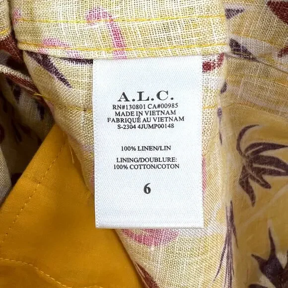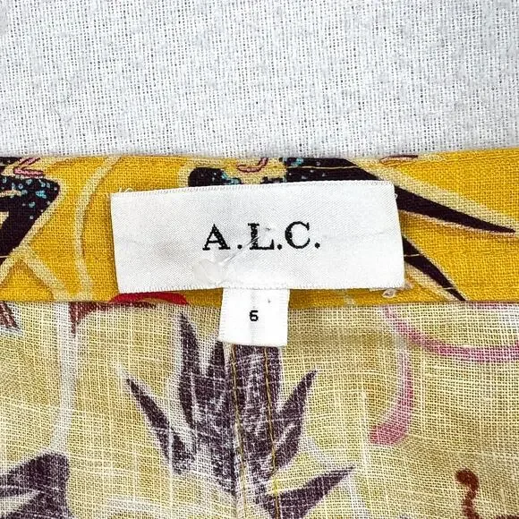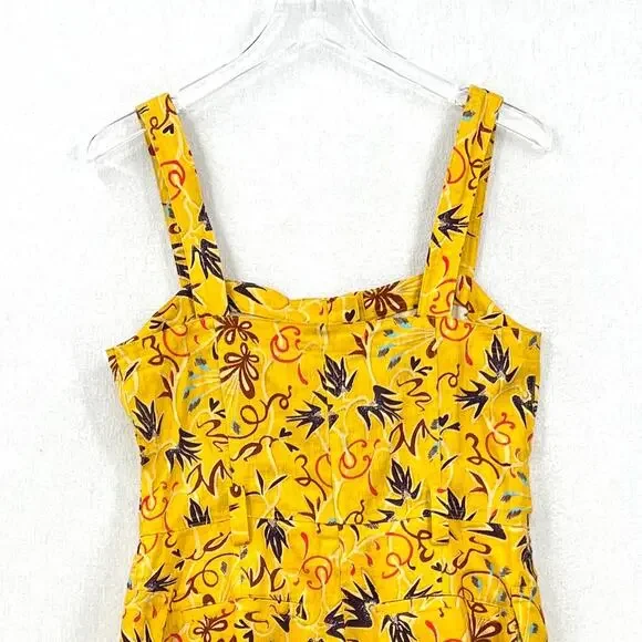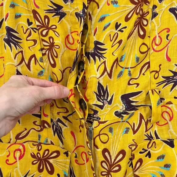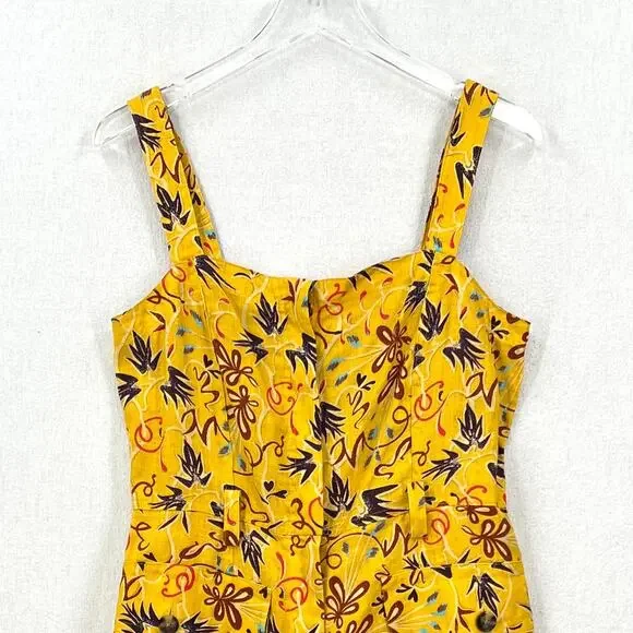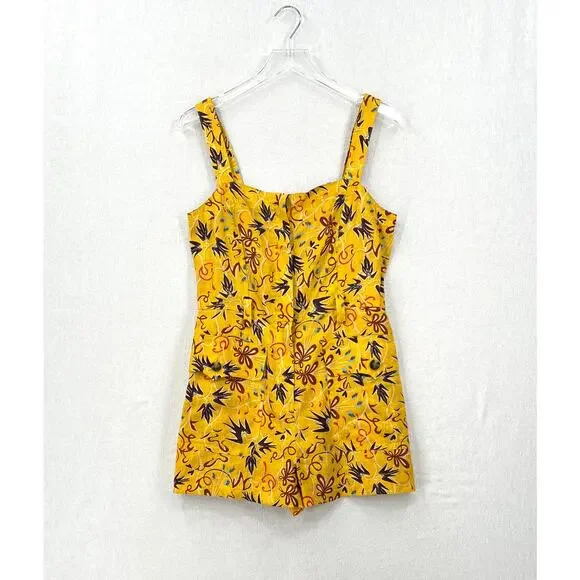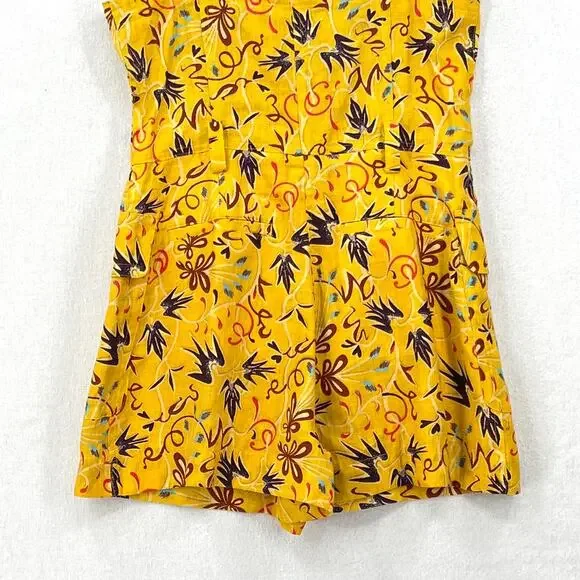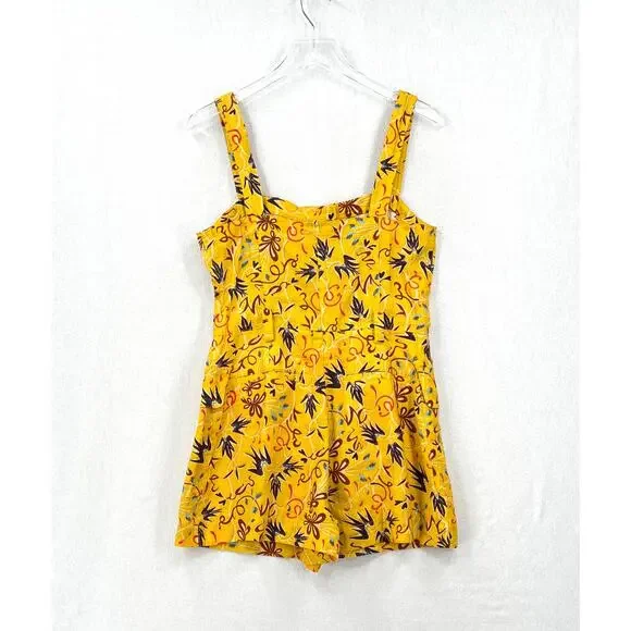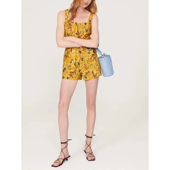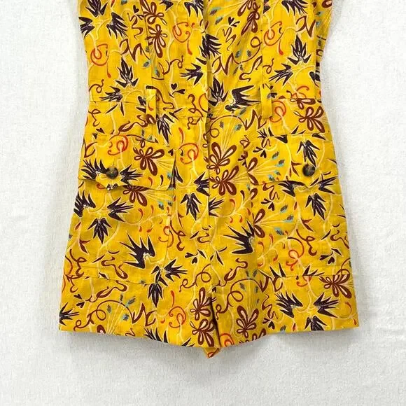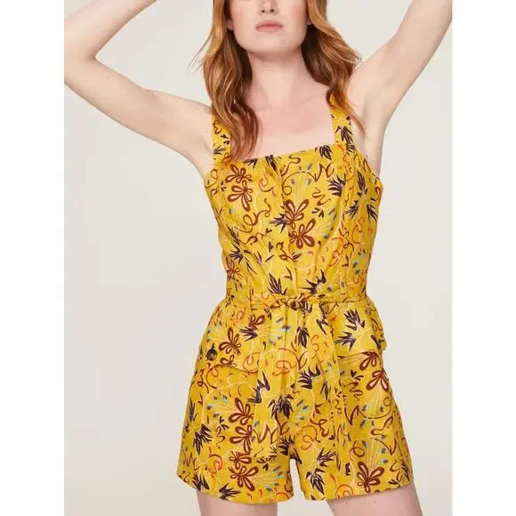 ALC Gilmour Romper Jumpsuit Women 6 Yellow Printed Linen Sleeveless Playsuit NEW