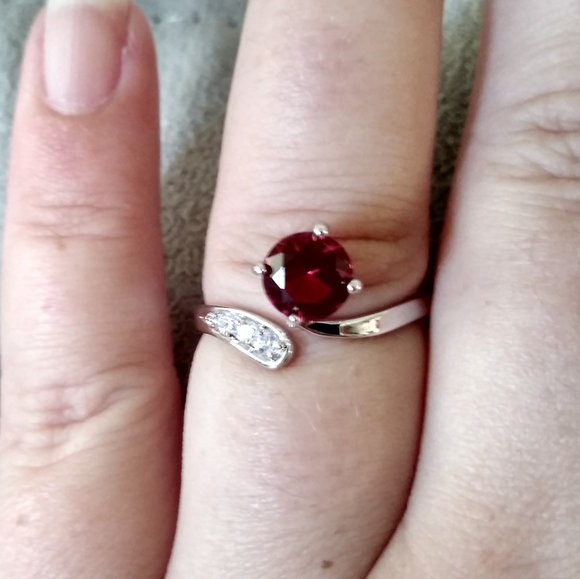 ALL SALES FINAL WHAT YOU SEE IS EXACTLY WHAT YOU WILL GET IT IS THE BUYERS RESPONSIBILITY TO READ THE DESCRIPTION AND VIEW PHOTOSSHIPS ASAP PACKAGED SECURELY INSIDE OF A RING BOXBE SURE TO CHECK OUT MY OTHER RINGS AND FINE JEWELRY!*All proceeds are going towards ongoing vet care for my beloved service dog, thank you for supporting a great cause*Beautiful & versatile vintage 14k white gold round cut intense red + white topaz open journey ringRepresents eternal love!Size 8.5 but could work for anything between an 8.5-9 because it gives and is openHas a brilliant round rare red topaz solitaire with pave white topaz accents on the sidePrettier in person!Excellent conditionHallmarked 14kShips ASAP securely in a jewelry ring box Retail $1175Price firm unless bundled!Unsure if the stones are natural or simulated or a combo of both, superb quality either way sold as is