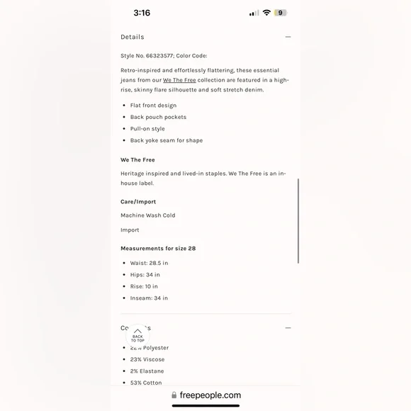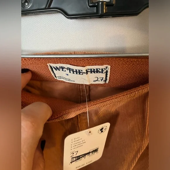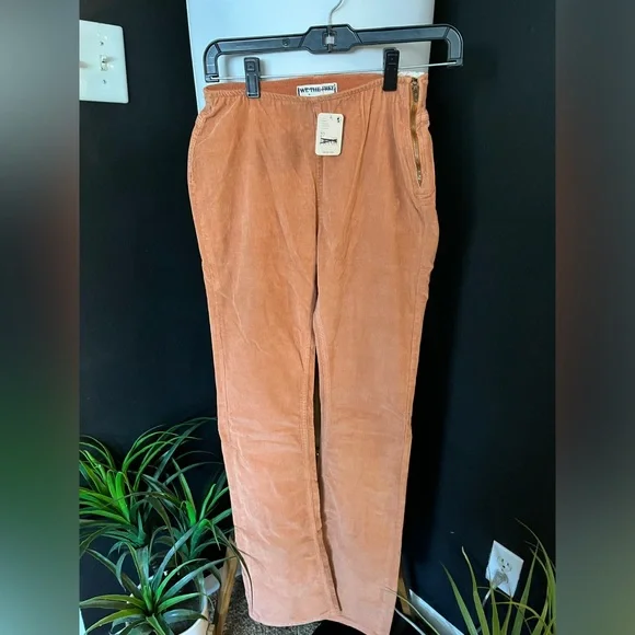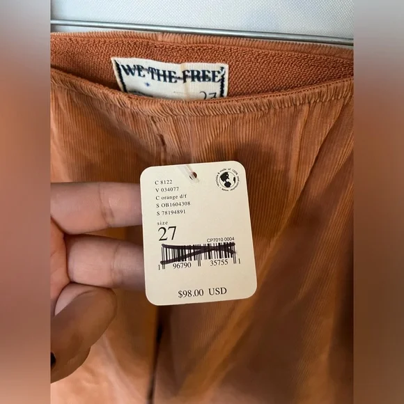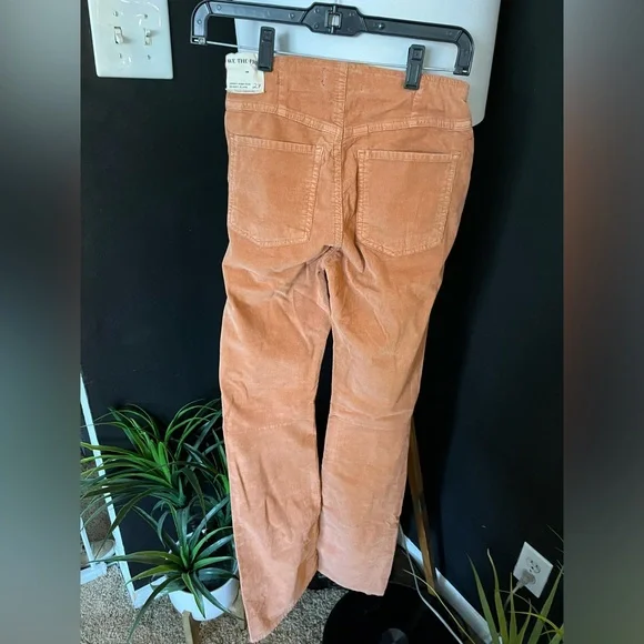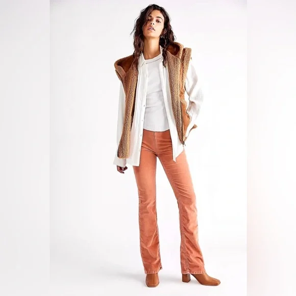 NWT FREE PEOPLE Jenny High-Rise Skinny Cord Flare Jeans In Orange Size 27