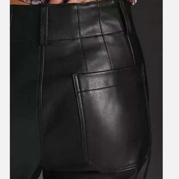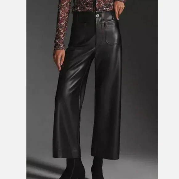 Anthropologie MaeveSize 26WNew with tagThe Colette Cropped Wide-Leg Faux Leather PantsStyle No. 4123583310007; Color Code: BlackGive a nod to mod with the Colette. Cropped with flare, our rave-reviewed silhouette charms with a form-fitting high rise and a breezy wide leg.Viscose, elastane; polyurethane coatingFront patch pocketsBack patch pocketsZip frontMachine washWaist 24" across (48")Inseam 24.5"
