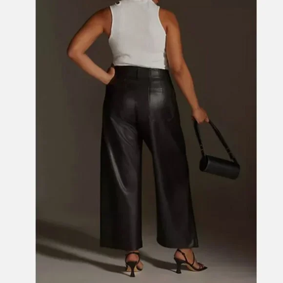 NWT Anthropologie Maeve 26W The Colette Cropped Wide-Leg Faux Leather Pants 26 W