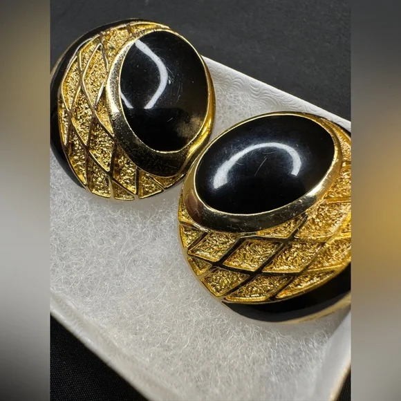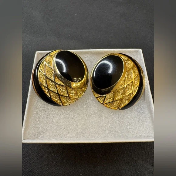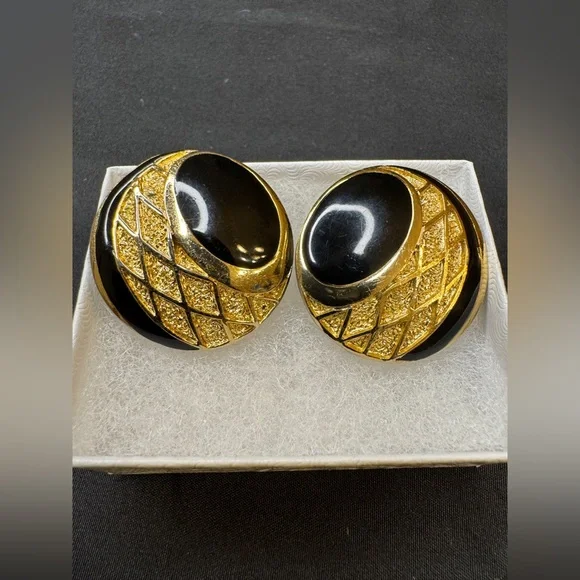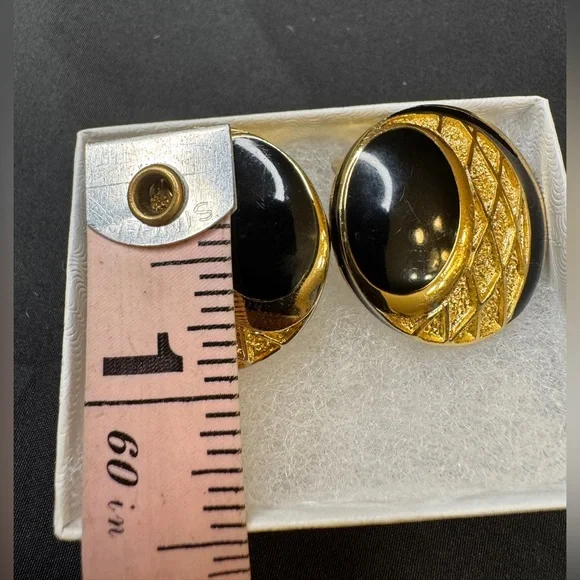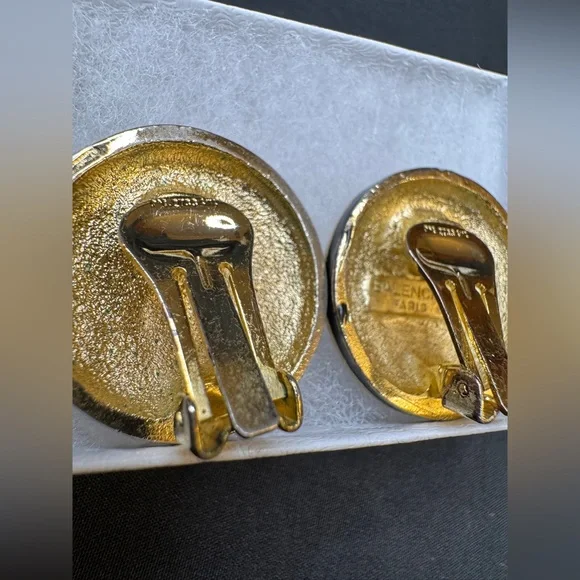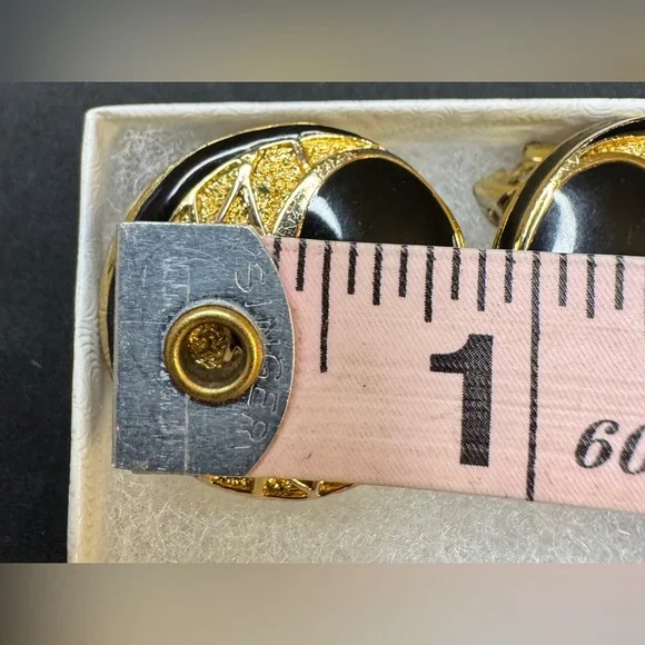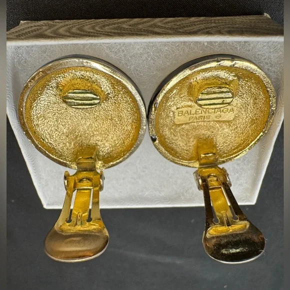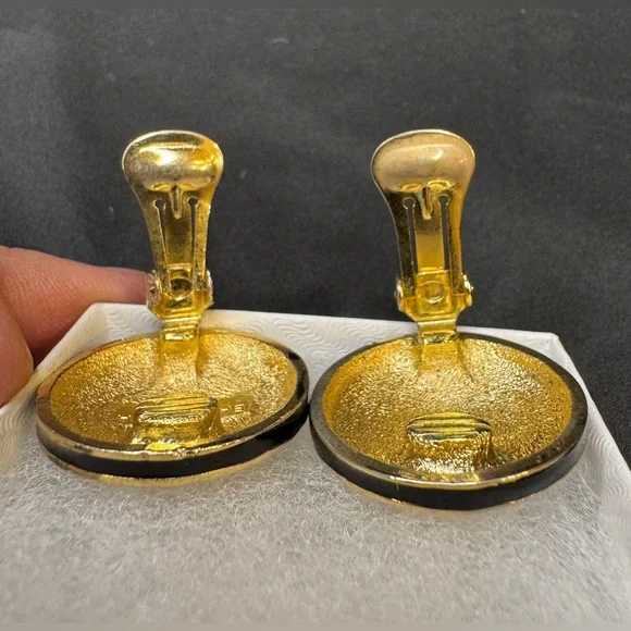 Preloved Balenciaga Authentic Rare Round Black and Gold Clip on Earrings - Signed and Stamped Serial # Beautiful and Elegant - Perfect for all occasionsApproximate Size: 3/16”...