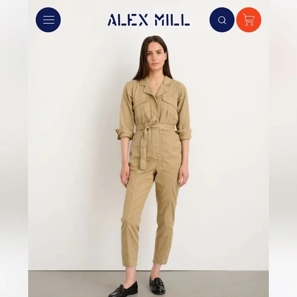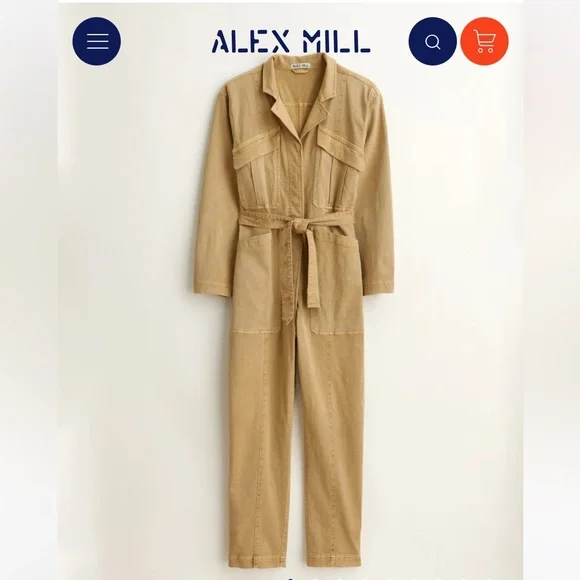 Alex Mill Size Small Great conditionMeet our 15-second outfit. Cut from supersoft washed twill, this jumpsuit has a relaxed (and adjustable) fit with a hint of stretchSelf-tie removable beltCuff up the legs or leave ´em straightGarment dyed for that special touch a.k.a. a really beautiful wash and great depth of color.Due to the nature of the garment dyeing process, slight variations in color should be expectedSize small measures 39" around the chest and 34" around the waist. Front rise measures 30.75", inseam measures 27"