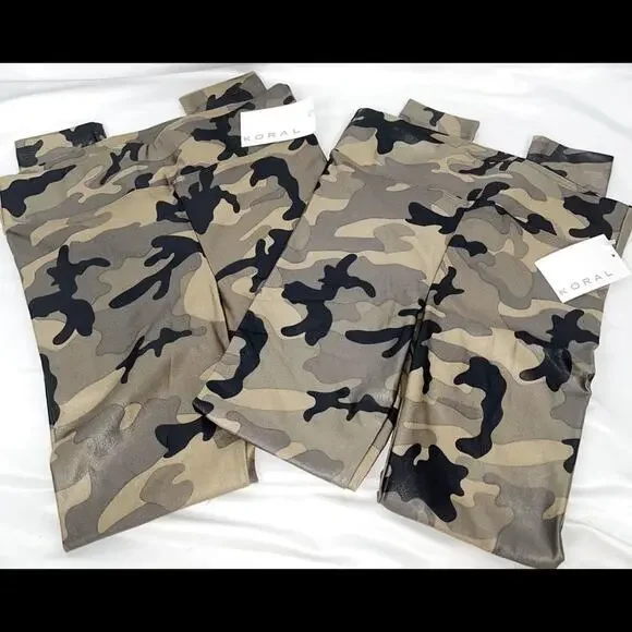 Koral Black Tan & Olive Camouflage Lustrous High Rise Leggings Size Medium NWT