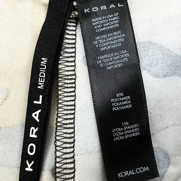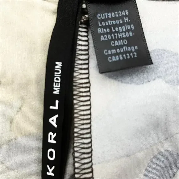 Koral Black Tan & Olive Camouflage Lustrous High Rise Leggings Sz Medium New with Tags. The Lustrous High Rise Leggings are a fitness wardrobe staple. Crafted from our signature Infinity fabric, these leggings utilize stretch fiber technology in a high-rise style that flatters your waist and silhouette while elongating your legs. Keep your look elevated and chic in these luminous leggings. Wide elasticized waist, high riseGlossy finishStretch fiber technology, form fittingAllover camo print, pull-on styleMedium to high impactMade for: trainingHealth and wellness are in Koral’s DNA, and they take a 360º approach to sustainable processing and ethical practices, from the threads that make up their high-tech fabrics to the water used in their mills.KORAL’s mills utilize non-toxic dyes and chemicals, cleaning and treating used water before returning it back to its natural source, and implementing advanced water and electricity reduction technology.