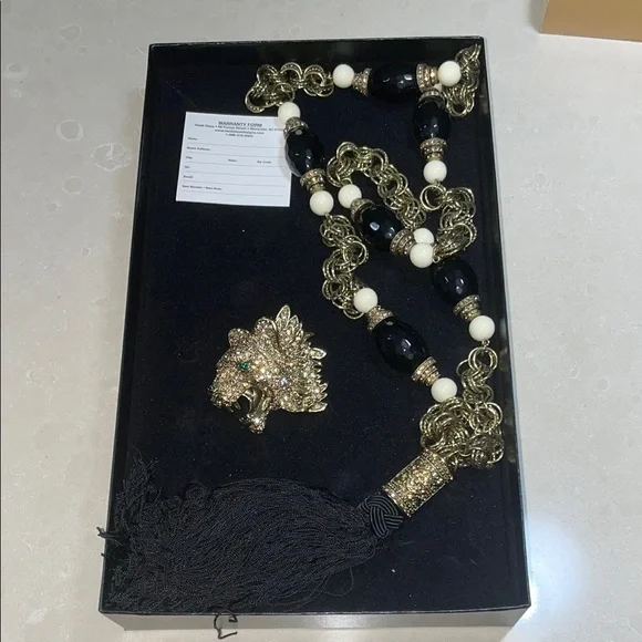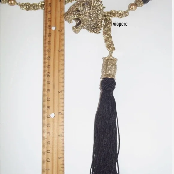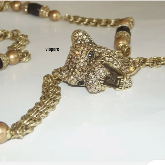 HEIDI DAUS "Fierce And Fabulous" Tiger Crystal Chain Beaded Tass necklace.NEW
