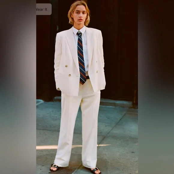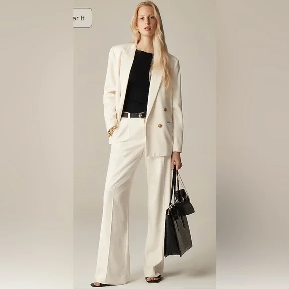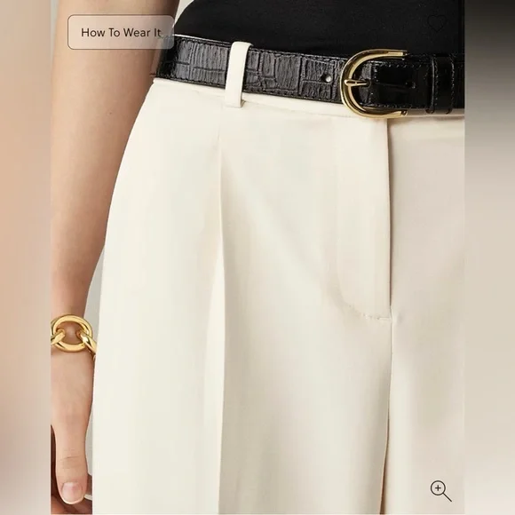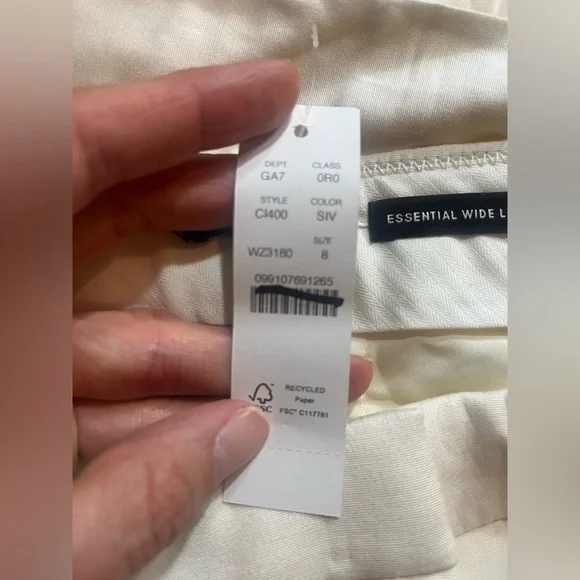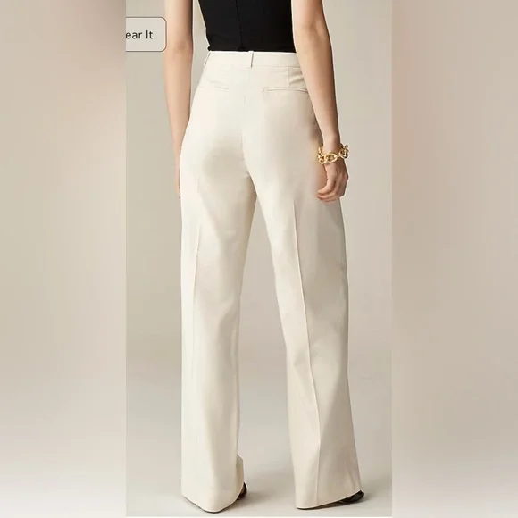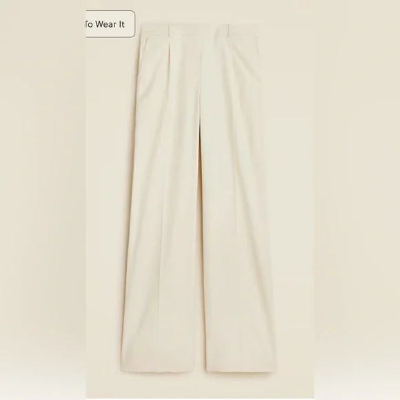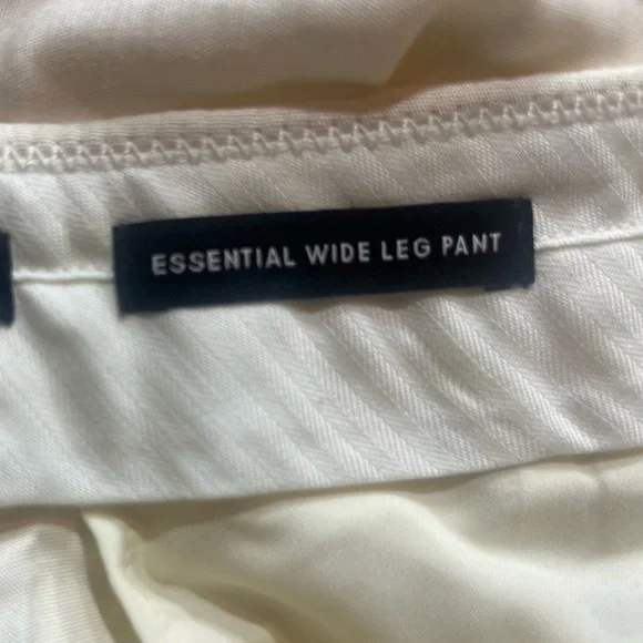 New with tagsTag and label marked through to prevent in store returnsColor: soft ivory Fits TRUE TO SIZE based on 8 customer reviews• Slightly relaxed fit, with a lower rise.• Wide through the hip, thigh and leg.• Front rise: 10 3/8"; 31" inseam; 23" leg opening (based on a size 6).A modern take on our top-rated trouser.We gave this pair a refresh with a lower rise that sits at the hips and kept the same easy wide-leg and polished front pleats you know and love. Plus, this version is crafted from our city twill, a smooth, double-layered fabric that´s made with LENZING™ ECOVERO™ Viscose sourced from responsibly managed forests and produced with less water and lower emissions.• 95% LENZING ECOVERO Viscose/5% elastane.• Zip fly.• Pockets.• Please note: Pockets are basted and will need to be opened for use.• Imported.• Item CI400