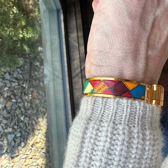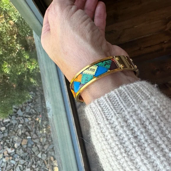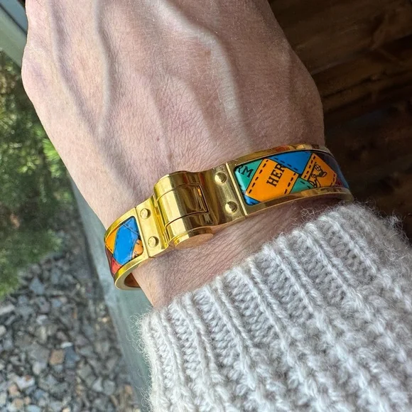 This luxurious Hermes bracelet features a stunning gold finish, embodying the brand´s signature elegance. Its minimalist design and closure make it a timeless piece, perfect for adding a touch of sophistication and color to any ensemble. This vintage model is in the iconic ribbon design.