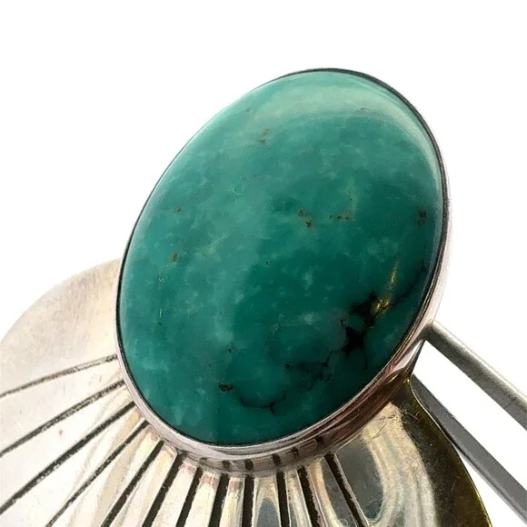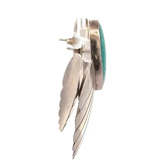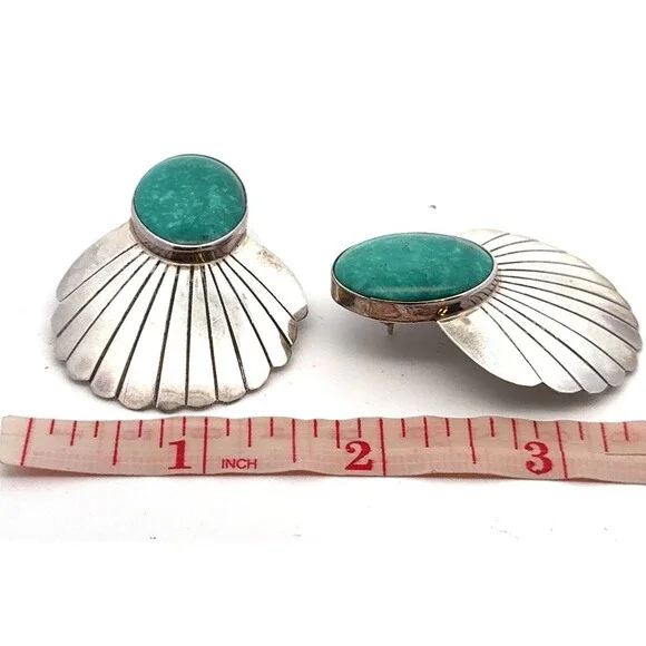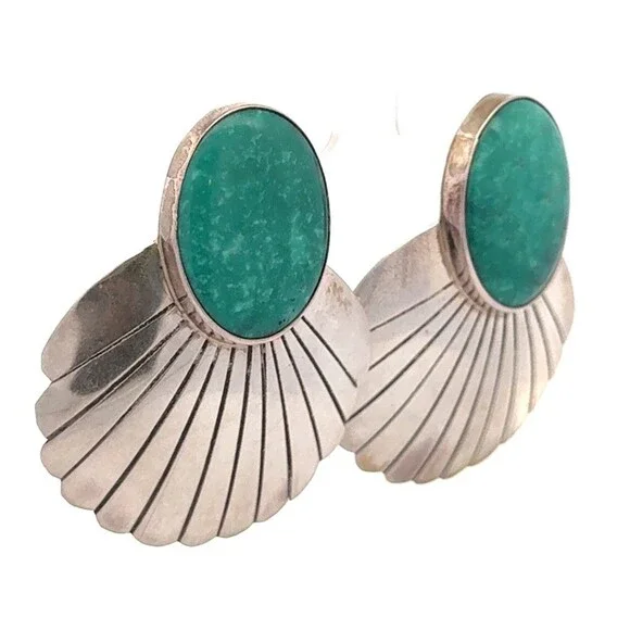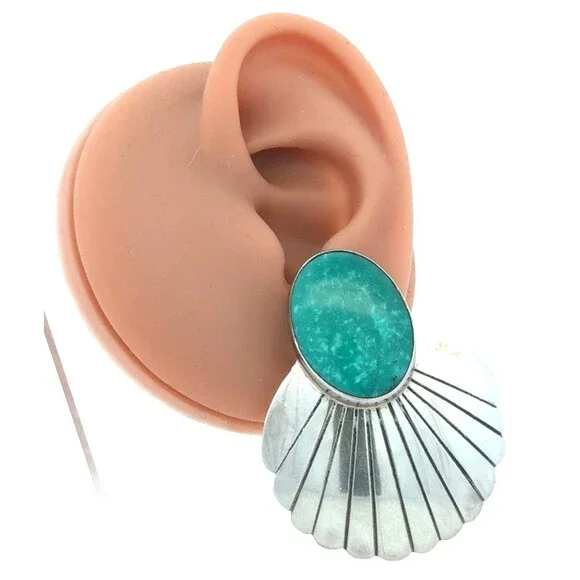 Native American M Begay 925 Sterling Silver Large Turquoise Shell Earrings