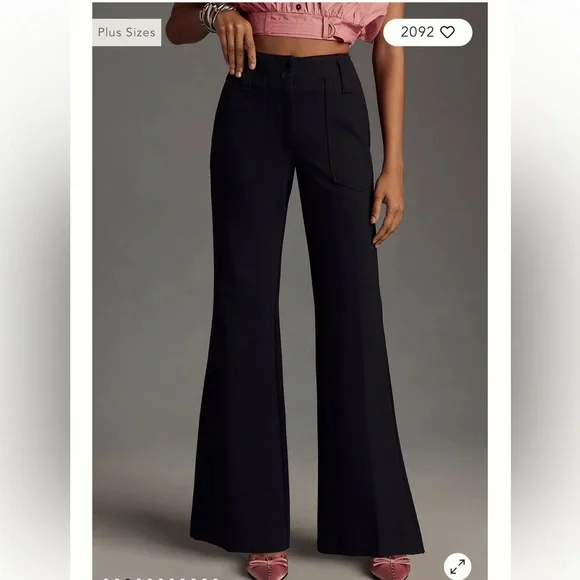 Perfect for workweek ensembles and happy hour alike, the Naomi charms with a high rise, tapered flare, and best of all, roomy pockets.Viscose, nylon, elastaneFront patch pocketsBack welt pocketsZip frontMachine washVery good condition!Across waist unstretched approximately 15”.Front rise approximately 12”.Inseam approximately 30”.W1702