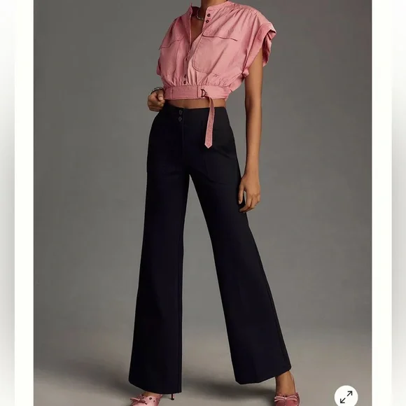 Anthropologie The Naomi Ponte Wide-Leg Flare Pants by Maeve in Black W1702 Sz 10