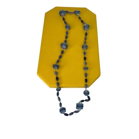 Swarovski Somnia necklace Extra long, Blue, Gold-tone plated LargeTaking a modern approach to bohemian bead work, this long necklace is formed from clusters of blue crystals and polished sodalite beads. Set on a fine gold-tone plated chain, it can be layered with other necklaces from the Somnia family, or worn alone; an endlessly versatile piece that will add an eclectic edge to your repertoire. This necklace is part of the Somnia family, designed by Creative Director Giovanna Engelbert for Collection I.Article no.: 5601905Collection:SomniaLength: 39 3/8 inchesMaterial:Crystals, Gold-tone plated, SodaliteColor:BlueClasp type:Spring ring