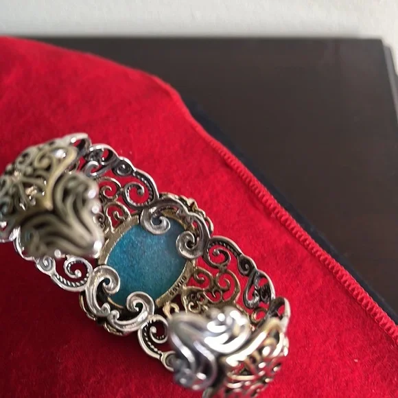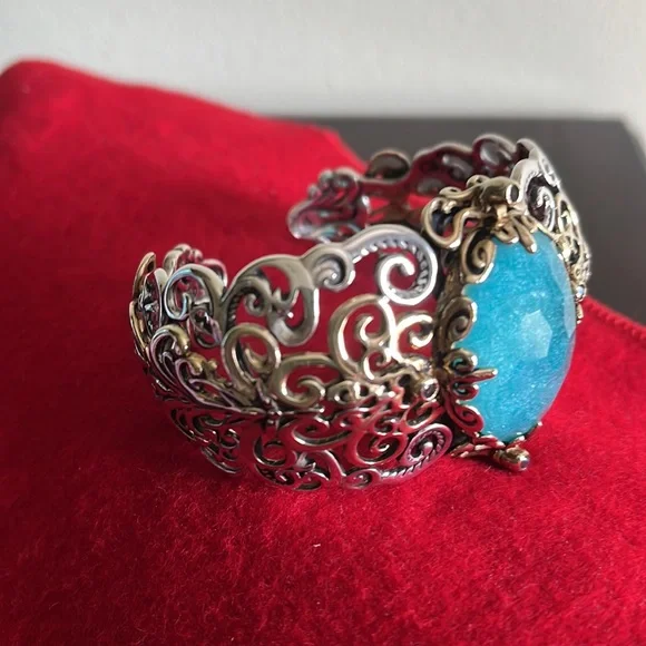 Carolyn pollack brilliance quartzite doublet /brass bracelet. Intricate and luxurious with graceful scrollwork. This wide sterling silver and brass cuff bracelet is gorgeous! Blue...