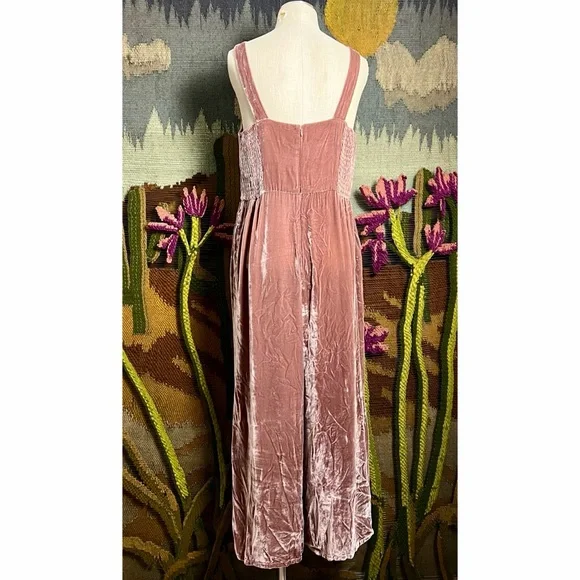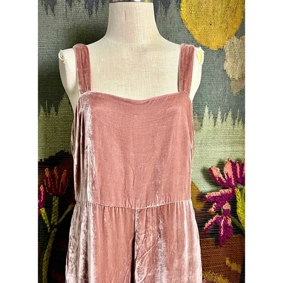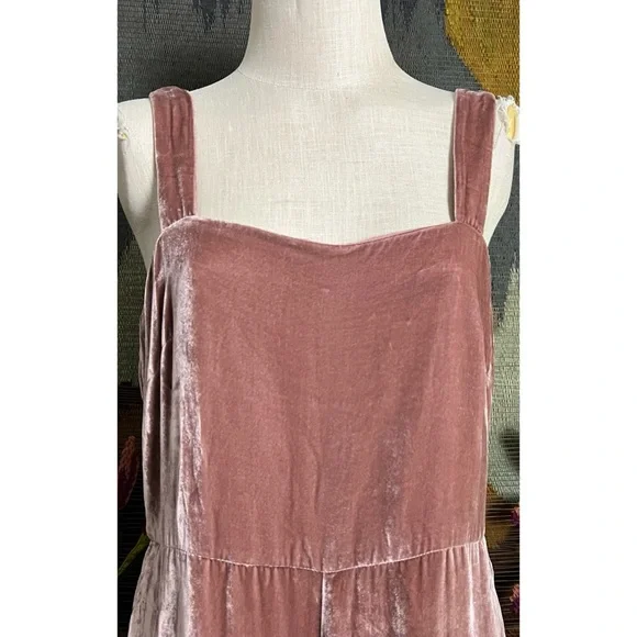 New With TagsSize 14This pretty jumpsuit by Madewell is done a soft scrumptious crushed velvet fabric.The dusty rose overalls have a wide leg.They have thick fixed straps.The jumpsuit has pockets.The fabric is 82% viscose & 18% silk.It has a hidden back zipper closure.Measurements Laying Flat:Length 54 1/4”Inseam 25”Bust elastic back 18 3/4”Waist 16 3/4”Hips 22.5”Torso 35.5”