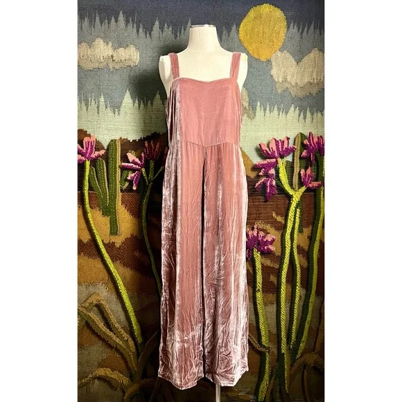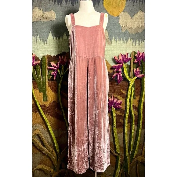 New With TagsSize 14This pretty jumpsuit by Madewell is done a soft scrumptious crushed velvet fabric.The dusty rose overalls have a wide leg.They have thick fixed straps.The...