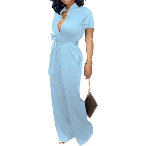 *Fabric type95% Polyester, 5% Spandex*Care instructionsMachine Wash*OriginImported*Fur description95% Polyester, 5% Spandex*Design:V neck, Full length pant, Elastic waist,Plain color, Front decorative buttons,short sleeve,Long pants jumpsuit with pocket, Belted wrap romper*Occasion: Suit for Casual Outdoor,Party, Cocktail, Evening, Club, Wedding,Vacation, Beach, jogging,Daily life*High quality stretchy and soft fabric made the fashion jumpsuit works with most body types.*Match:Perfect to pair with sneakers, heels or sandals.*This casual jumpsuit with high quality and unique design, simple but not dull, casual but sexy.This is a must have in your spring and summer wardrobe.*Casual Solid Short Sleeve Elegant Stand Collar Button Down Long Pants Rompers Straight Club Outfits With Pockets Belt*Casual V Neck Short Sleeve Printed Jumpsuits Elegant Buckle Ziper Long Pants Rompers Straight Club Outfits With Pockets Belt*Casual V Neck Short Sleeve Printed Jumpsuits