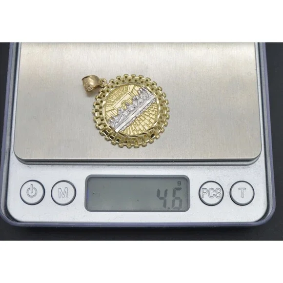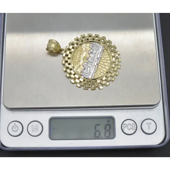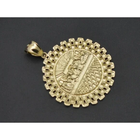 Real 10K Solid Yellow Gold Shiny Last Supper Jesus Cuban Link Medallion Pendant