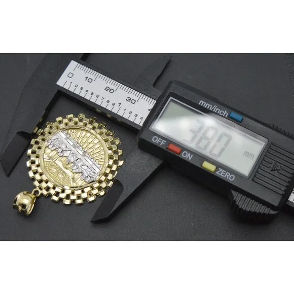 This Real 10K Solid Yellow Gold Shiny Last Supper Jesus Cuban Link Medallion Pendant is a stunning piece that brings together elegance and religious symbolism. Crafted with...