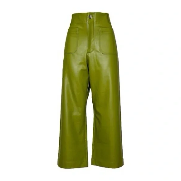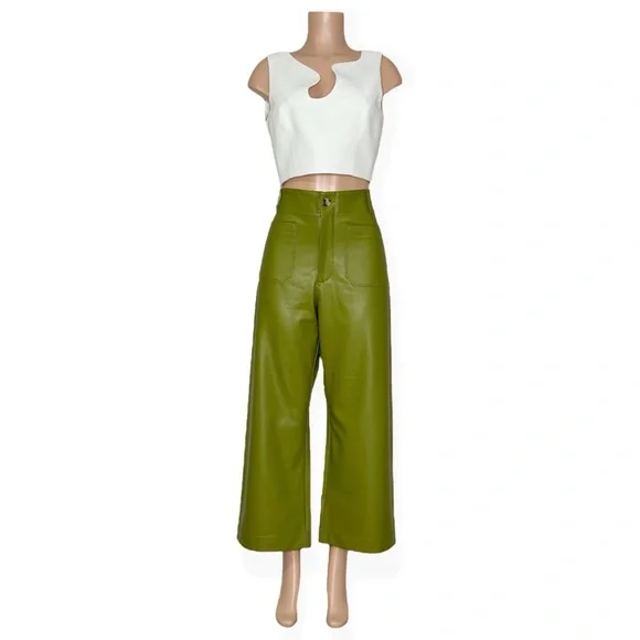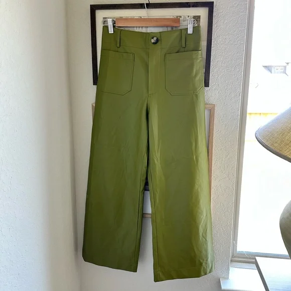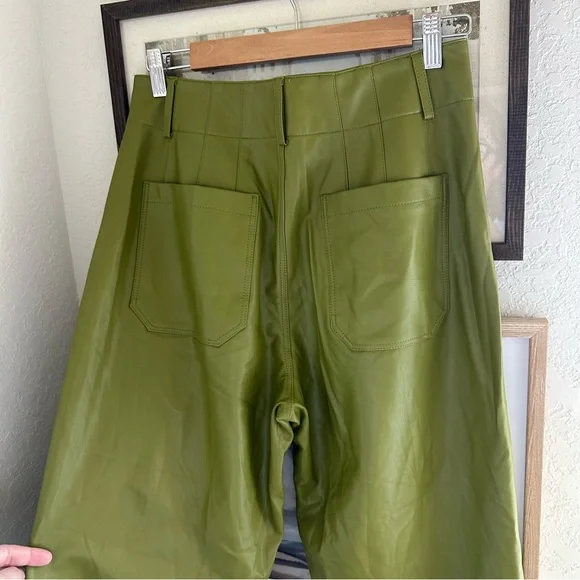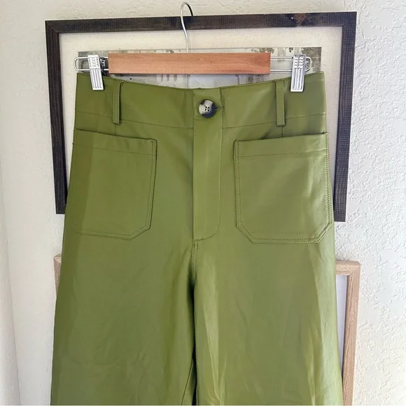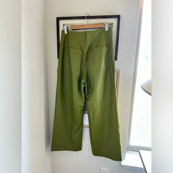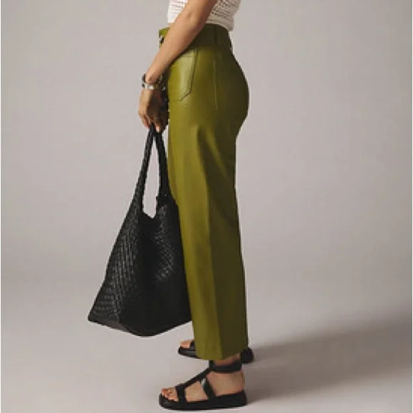 MAEVE x ANTHROPOLOGIE Colette Cropped Wide Leg Faux Leather Pants Green 28