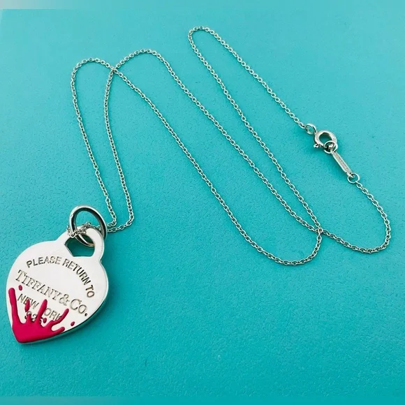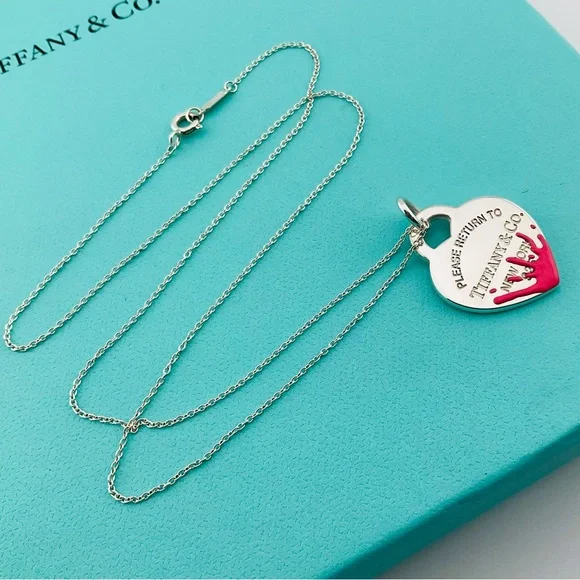 Return To Tiffany Pink Enamel Splash Heart NecklaceApproximately 18” in lengthPreloved condition: hairline scratches noted *** Please review all photos carefully. Item comes with pouch or box that available at the time of purchase.*** Please check out our other items. We have over 200 items listed. Feel free to message us with any questions. Happy shopping:))