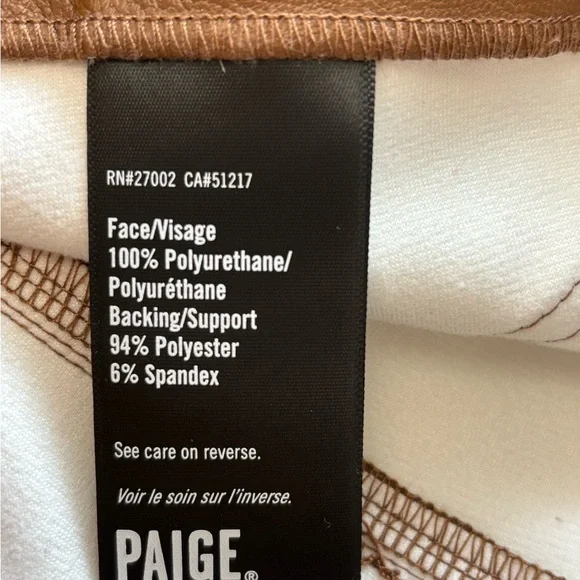 PAIGE Faux Leather Cropped Flare Leg Pants Size: 31New without tag in excellent condition. Never worn (NO FLAWS)Material: 100%Polyurethane Color: BrownButton with zip closureHand Measurement: Inseam:27´´Leg Opening:9’’Waist:17’’High rise:11’’Come from smoking free home & pet free homeFast Shipper/Same Day/Next DayLet me know if you have any questionsThanks For Looking!