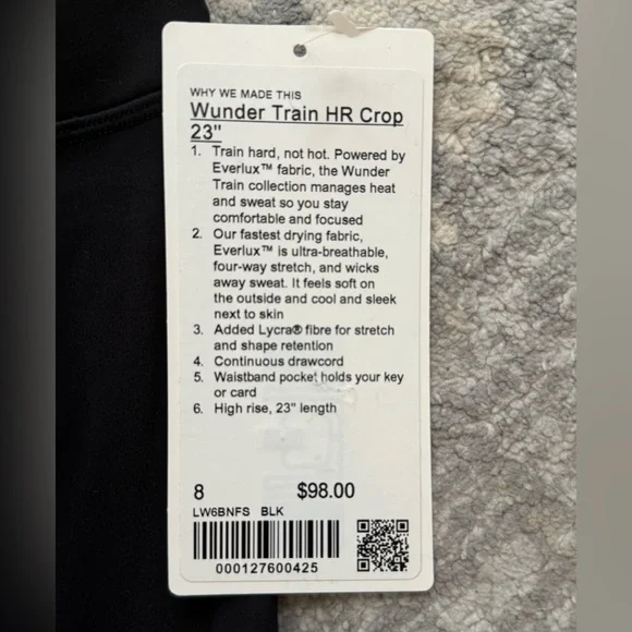 Release Date: 11/2024Original Price: $98Material: EverluxTrain hard, not hot. Powered by Everlux™, the Wunder Train collection is highly breathable and quickly wicks sweat so you feel less sweaty during (and after) your workout.Everlux™Everlux fabric is engineered to keep you feeling cool and dry in hot, sweaty indoor environments.Sleek look and feelFeels cool on skinUltra-breathableLightweightSweat-wickingQuick-dryingFour-way stretchHigh Rise, 23" LengthIntended to sit below calfFeaturesDesigned for: TrainingLycra®: Added Lycra® fibre for shape retentionContinuous drawcord: Won´t get pulled inside or lost in the washWaistband storage: Pocket on the waistband holds your key or cardRise and inseam: High rise, 23" inseam