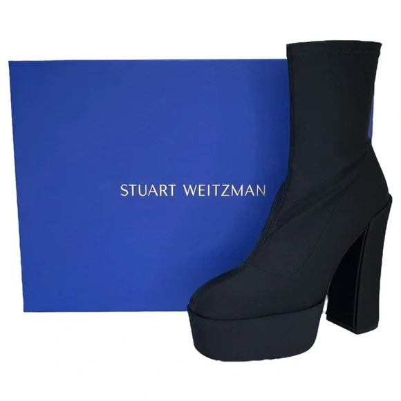 Stuart Weitzman Skyhi 145 Stretch Fabric Platform Womens Sock Bootie Size 8M