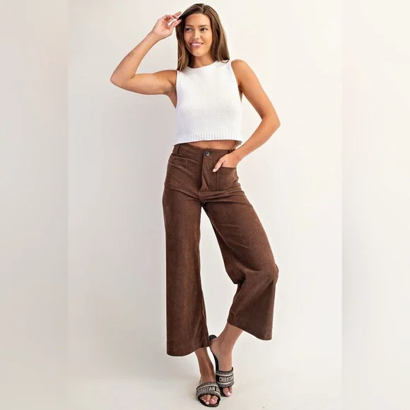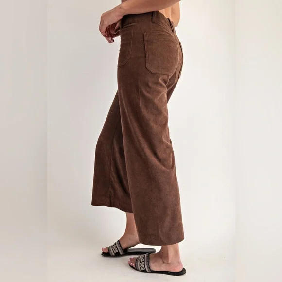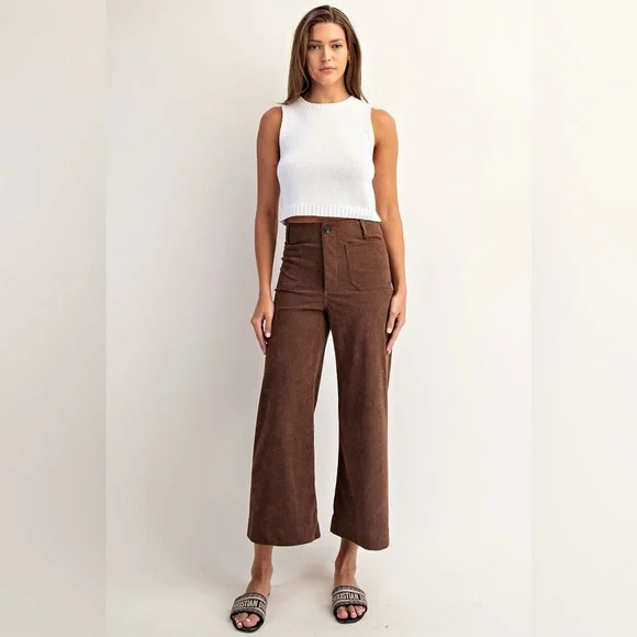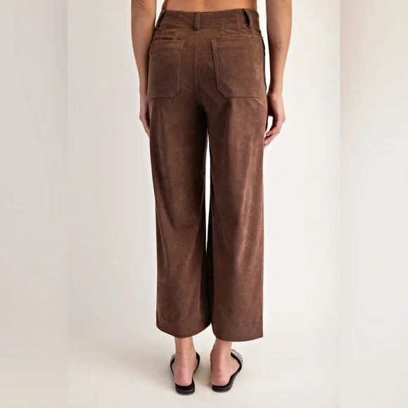 Slouchy Straight Leg Cropped Corduroy Pants with Patch Pockets - eesome