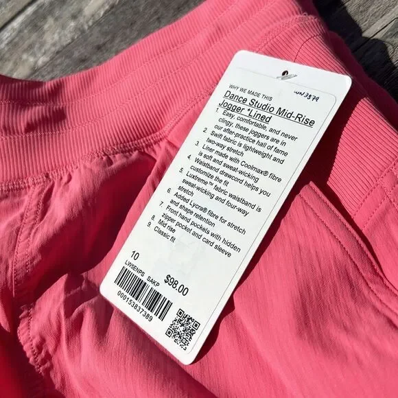 Lululemon Dance Studio Mid-Rise Jogger Full Length Sakura pink size 10 NWT lined