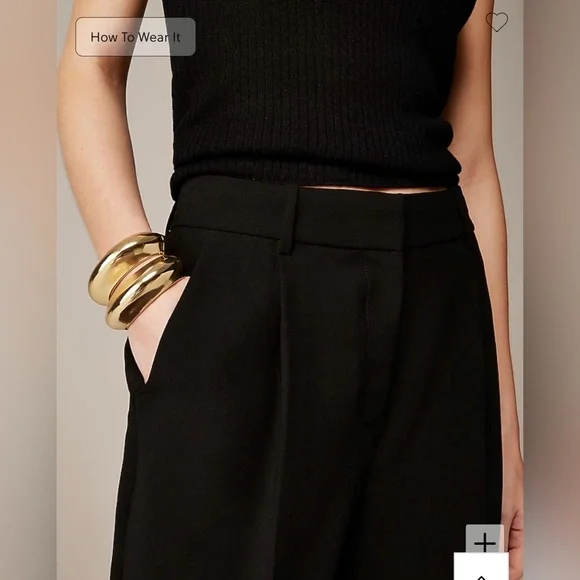 New with tagsTag and label marked through to prevent in store returns• High rise.• Easy through the hip and thigh, with a relaxed leg.• Front rise: 11 1/4"; 30" inseam; 17" leg opening (based on a size 6).We´re loving this comfortable trouser...with a slightly tapered, straight leg and sleek pleating down the middle, for the office and beyond. Plus, this style was crafted with drapey crepe, our new lightweight fabric that feels effortless and easy on the body. We recommend pairing it with your favorite button-down shirt for a laid-back-yet-luxe look. P.S. Our design team loves wearing this pant in a size up, for a slouchier, relaxed fit. P.P.S. These pants were made from polyester recycled from plastic that could otherwise go to landfills.• 63% recycled polyester/37% polyester.• Zip fly.• Perfecting PocketsT™.• Unlined.• Machine wash.• Imported.• Item BN157