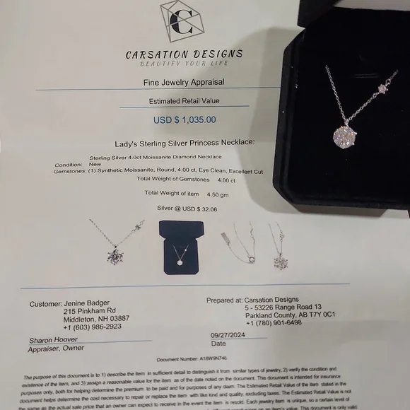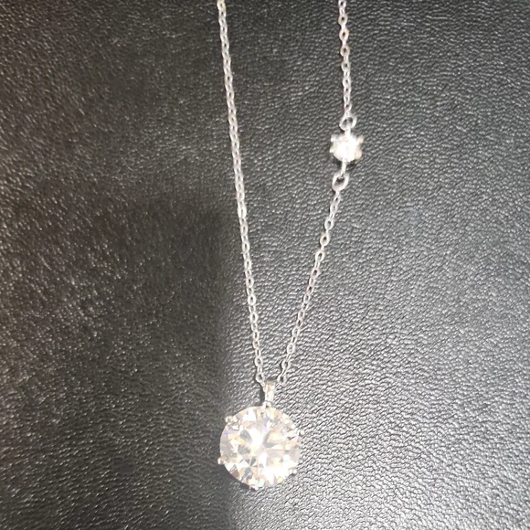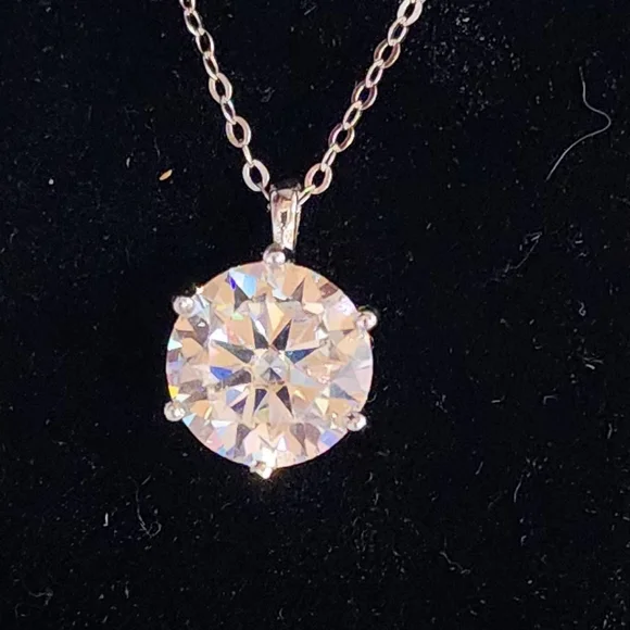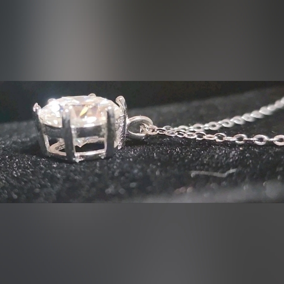 This exquisite silver necklace showcases a striking 4.0 lab created diamond pendant, expertly set to capture light and enhance its brilliance. The minimalist design emphasizes...