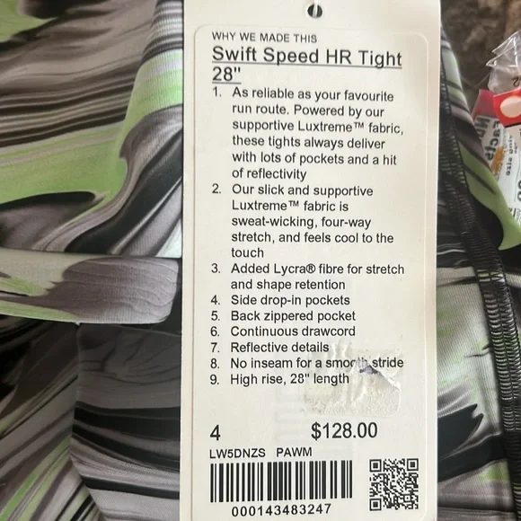 LULULEMON SWIFT SPEED HIGH RISE LEGGINGS 28” PAWM COLOR SIZE 4 NWT