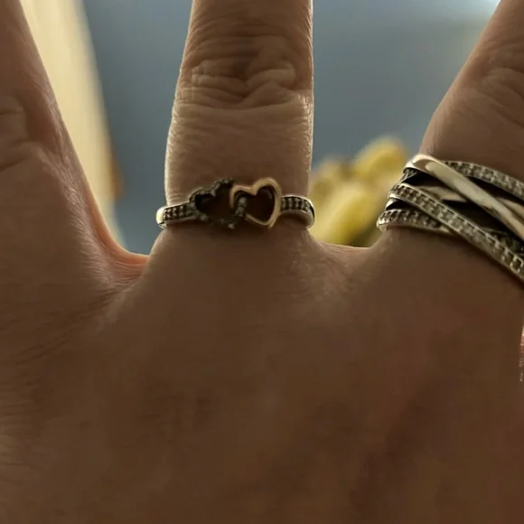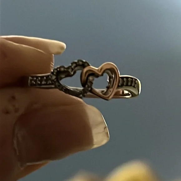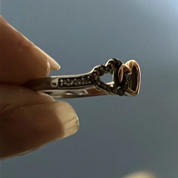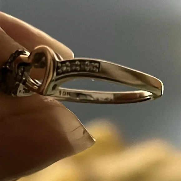 Double heart brown diamond 10k rose gold and sterling silver ring size 8 from Helzberg! All stones intact, can be resized by jeweler. Perfect promise ring!