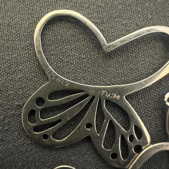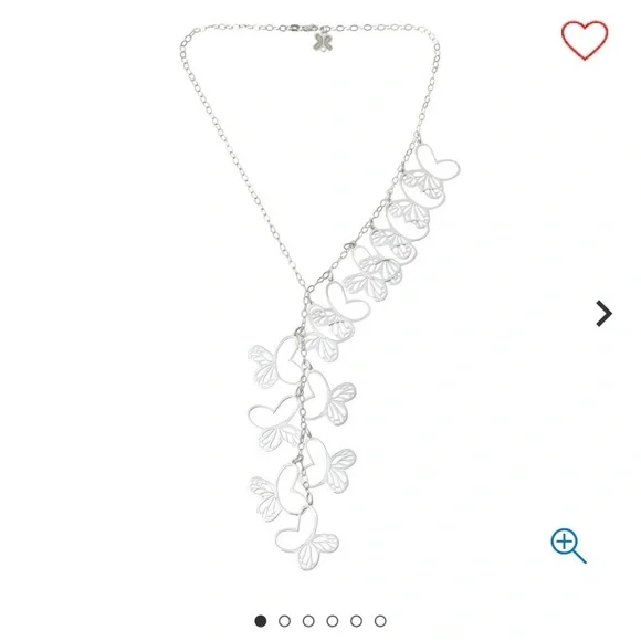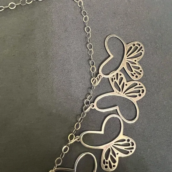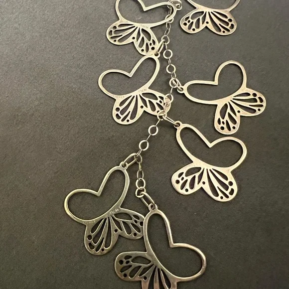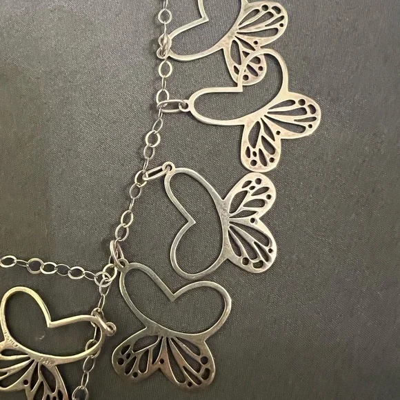 Brand new with tags. Beautiful, unique necklace.Last 2 photos are stock to show how far down necklace goes. All parts of the necklace are marked 925, including all of the butterflies. Boxed and ready to ship. Has slight tarnishing, can be polished upon request.