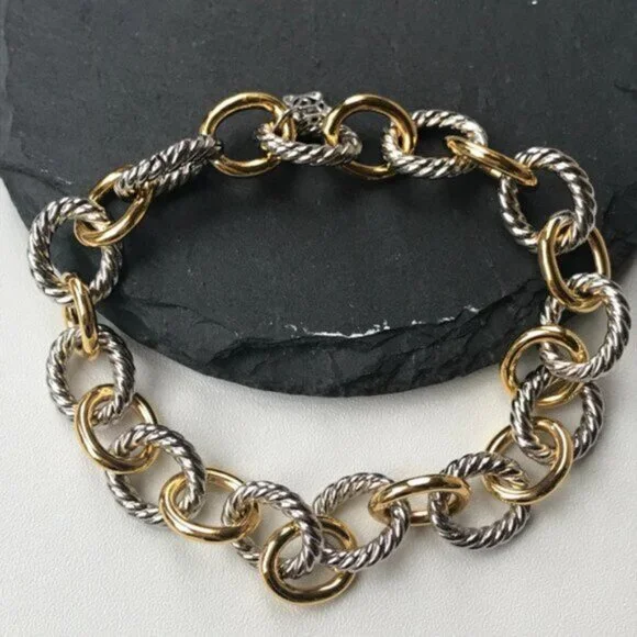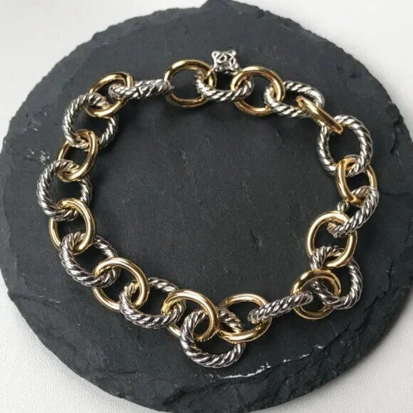 Length: 19cm; The bracelet consists of 10 micro oval gold rings and 10 micro oval twist rings; Free David Yurman Gift Box