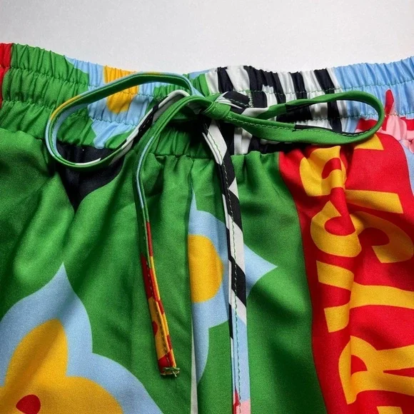 Multicolor Two Piece-SetVacation Random PrintLoose FitShort SleevesCollar ShirtButton-DownNo Shoulder PadsElastic WaistDrawstring Waist Relaxed FitSide PocketsLong Pants95%...