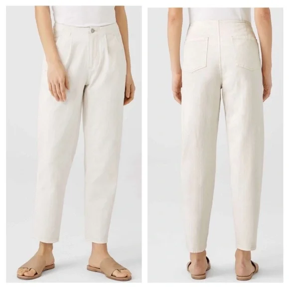 Eileen Fisher Undyed Organic Cotton Denim Taper Pant Size 12 Natural Minimalist