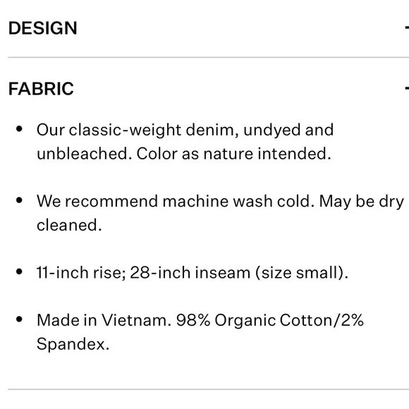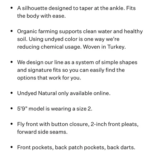 New with tags. Undyed 98% cotton with some stretch. Machine washable Approximate measurements Inseam 28”Rise 12”Waist 16.5” flat