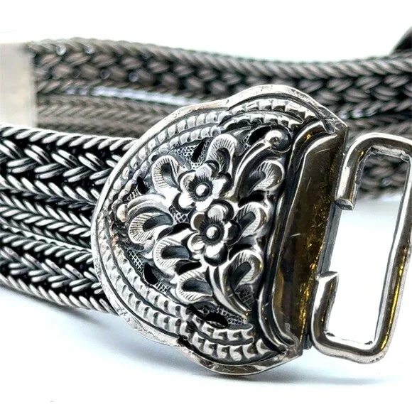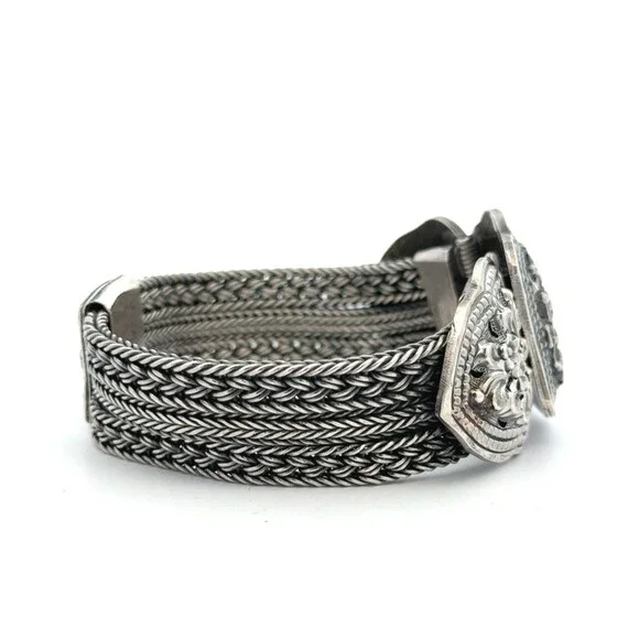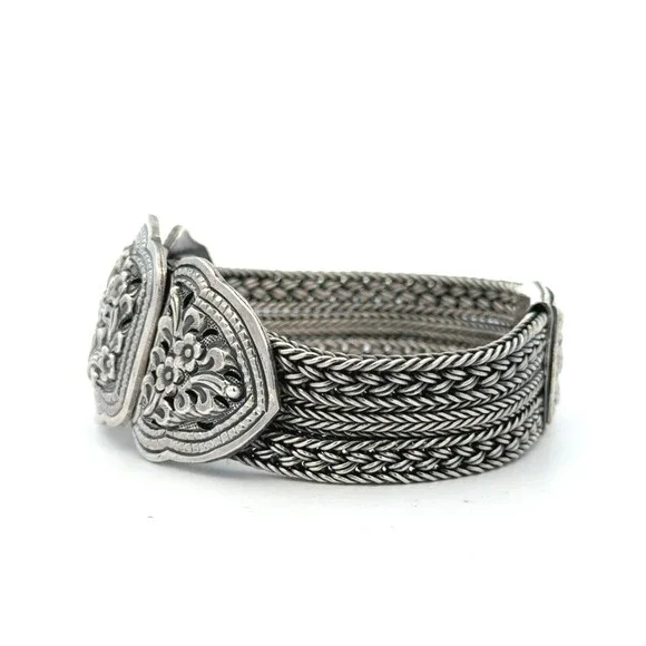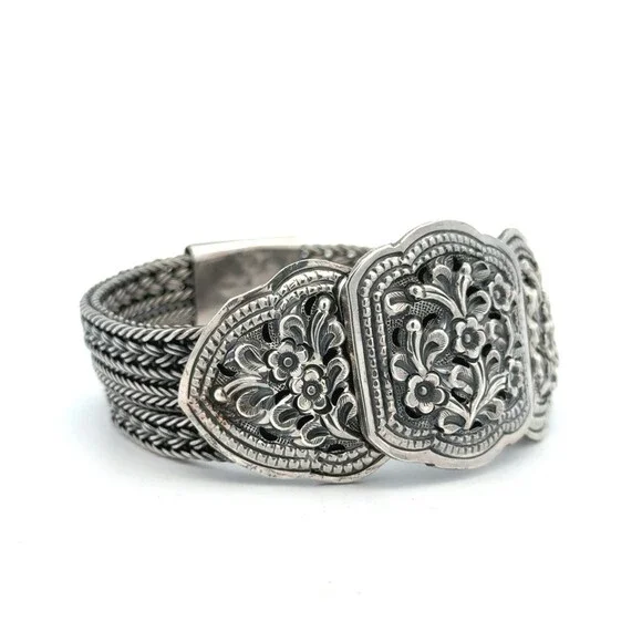 Designer 925 Sterling Silver Multi Strand Floral Braided Link Statement Bracelet