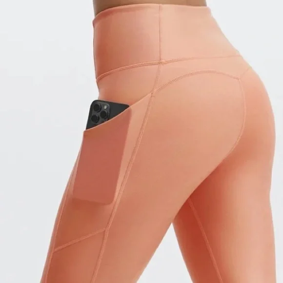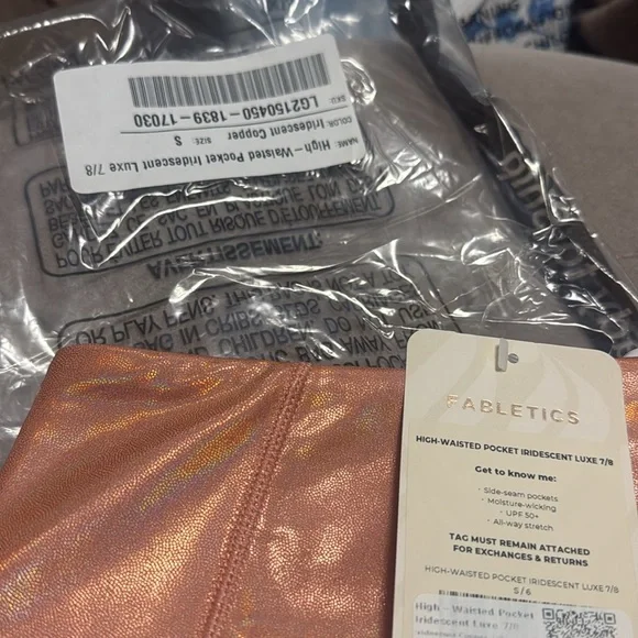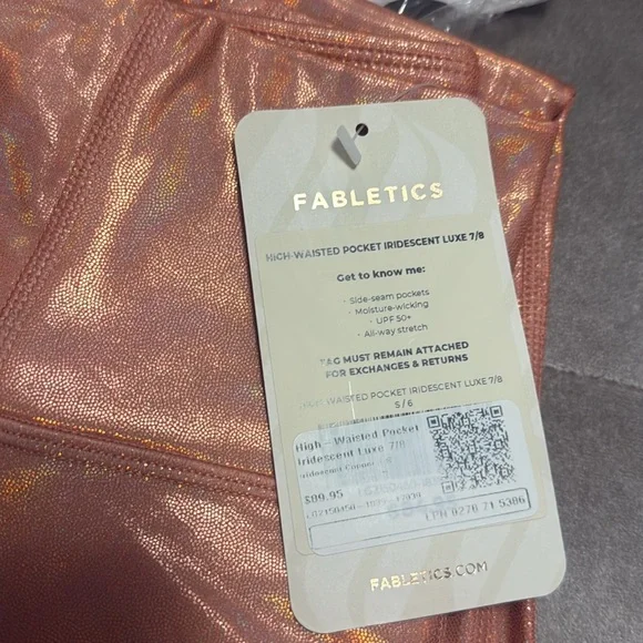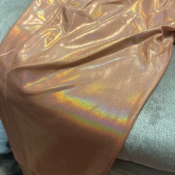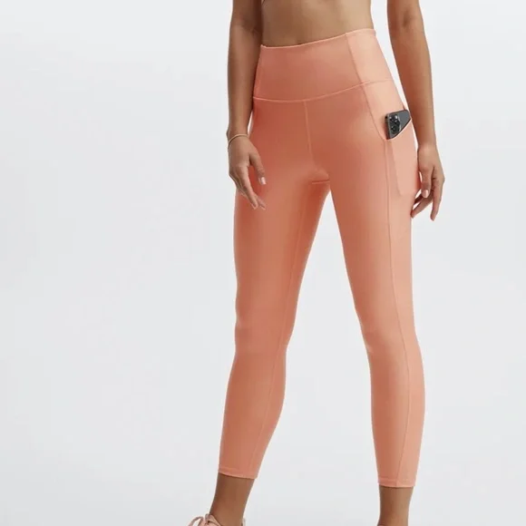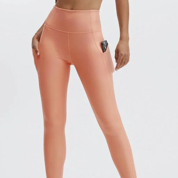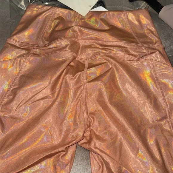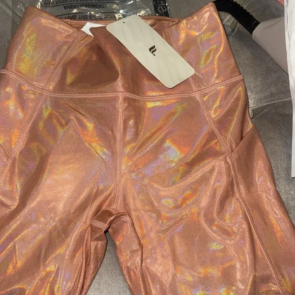 Fabletics Iridescent Rose Gold Copper high waisted pocket Leggings, small