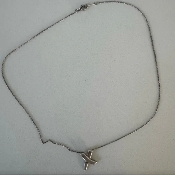 Tiffany & Co Sliver 925 Paloma Picasso Kiss X Pendant Necklace ….EUC