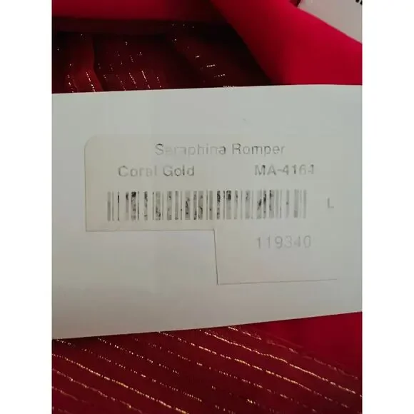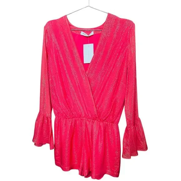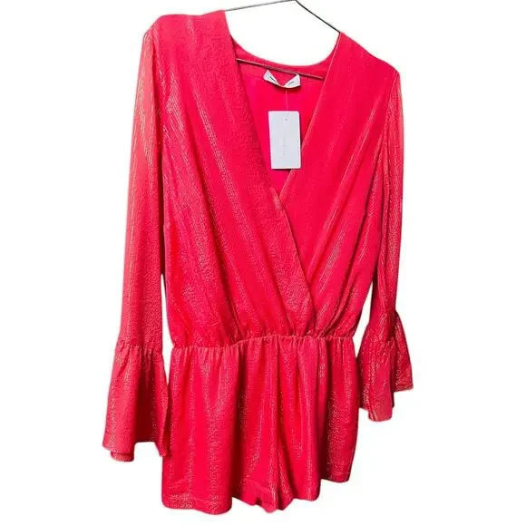 Amanda Uprichard Seraphina Silk Romper Coral Gold Bell Sleeves Size Large