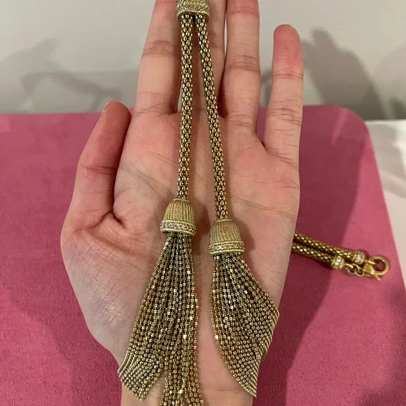 Pre-Owned Judith Ripka Cubic Zirconia 14k Gold Clad 24" Popcorn Chain Verona TasselNecklace 1.17ctwSize- OSColor- GoldCondition- Slightly used